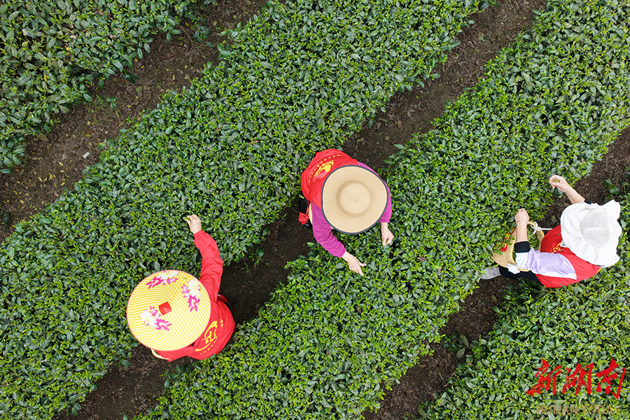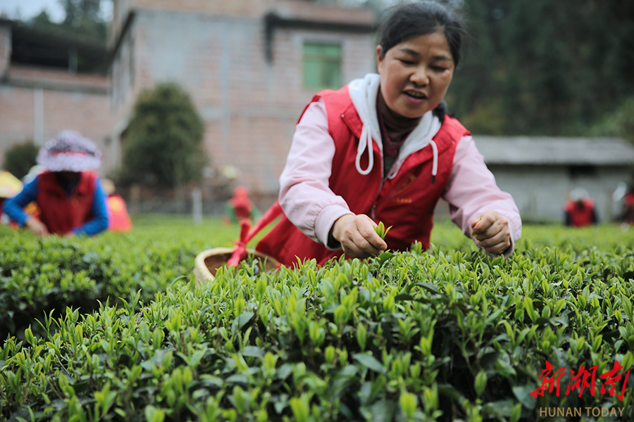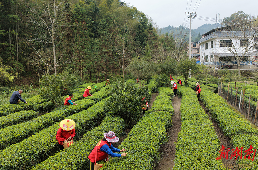 3月23日,桂东县清泉镇里地村凤娇茶园举办采茶竞赛。桂东县星火志愿者协会的志愿者们化身“采茶能手”,既帮助茶农抢收 “明前茶”增收,又在劳动中感受农耕乐趣。 邓仁湘 摄(湖南图片库)