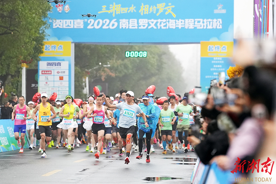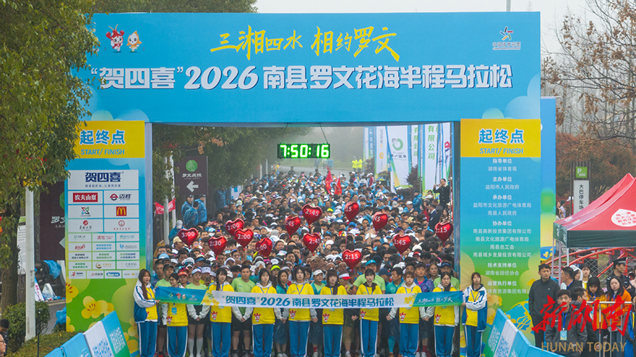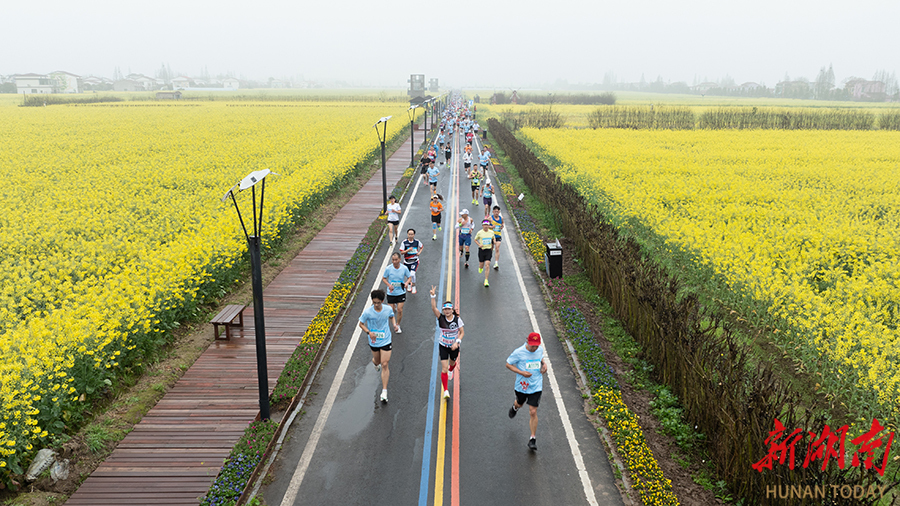 3月22日,2026南县罗文花海半程马拉松在洞庭之心广场鸣枪开跑。2000名来自全国各地的跑步爱好者在万亩油菜花海中竞技。本次赛事以“三湘四水 相约罗文”为主题,参赛选手途经“全国乡村旅游重点村”“国际涂鸦艺术村”等特色景观,体验自然与艺术交融的独特赛道。 黄云 摄(湖南图片库)