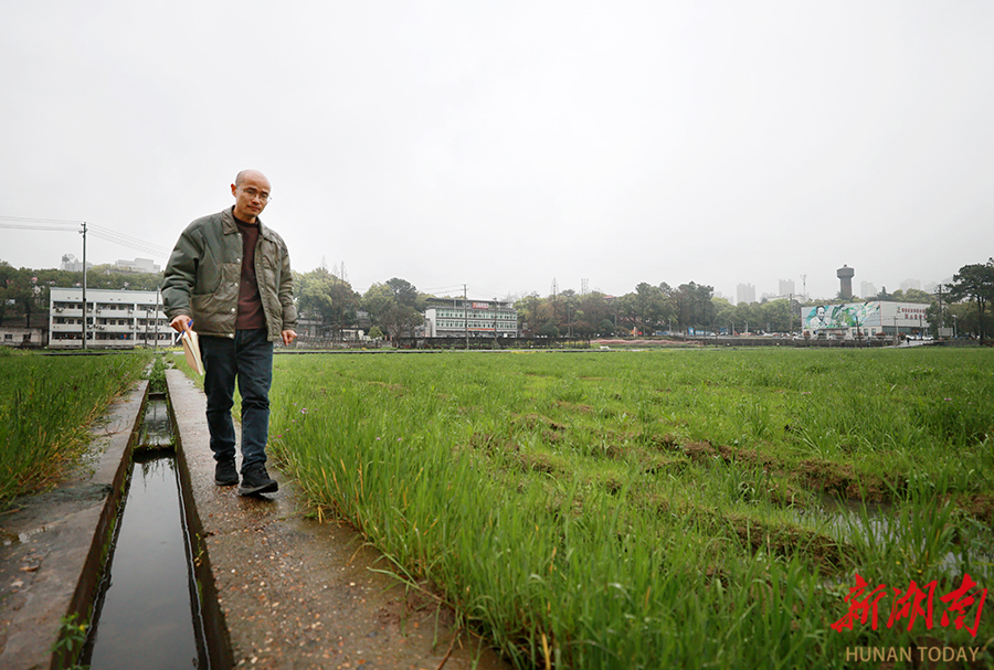 3月23日,靳云凯教授行走在试验田埂上。湖南农业大学靳云凯教授带领团队历经十年攻关,在全球率先培育出甲烷减排70%且增产20%的水稻新品种,目前即将进入大田推广阶段。 湖南日报全媒体记者 赵持 通讯员青晓彤 摄影报道