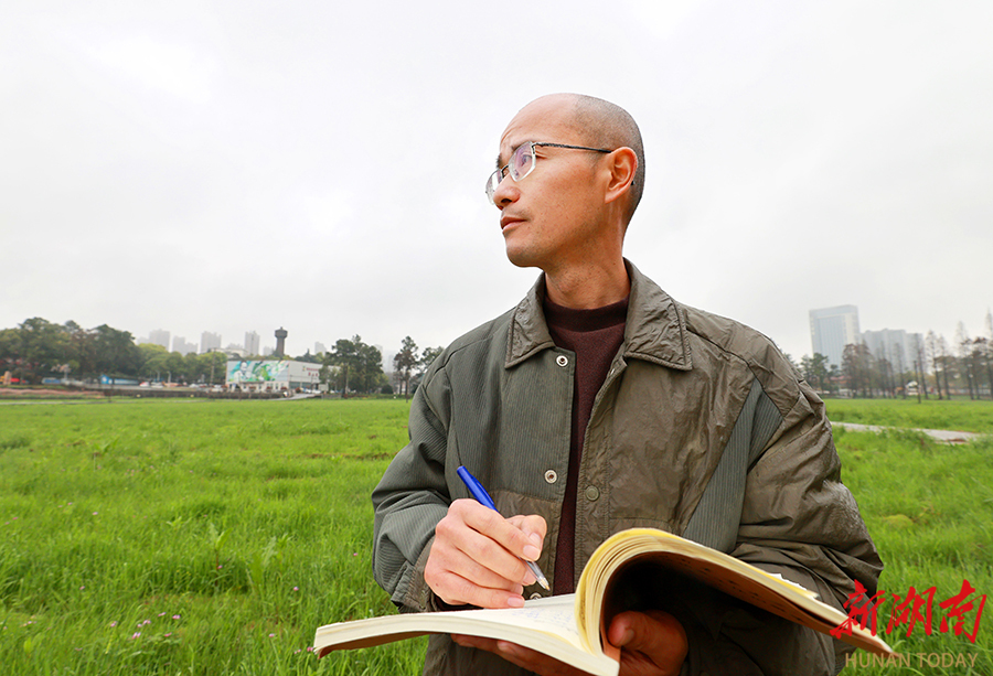 3月23日,靳云凯教授在试验田边记录水稻生长数据。湖南农业大学靳云凯教授带领团队历经十年攻关,在全球率先培育出甲烷减排70%且增产20%的水稻新品种,目前即将进入大田推广阶段。 湖南日报全媒体记者 赵持 通讯员青晓彤 摄影报道