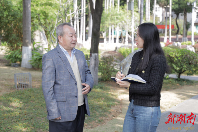 李寅生教授(左)为湖南日报全媒体记者解联。