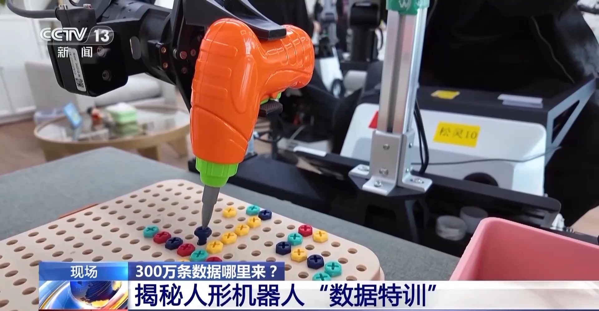 总台记者 马欣欣:在搭建的是“儿童房”的场景中,模型训练师正在操控机器人去把这个反了的袜子给翻过来。完成这些动作的同时,也会实时采集这些机器人关节角度值、运行轨迹等多个数据,一共300到1000次才能完成一个动作的数据采集。