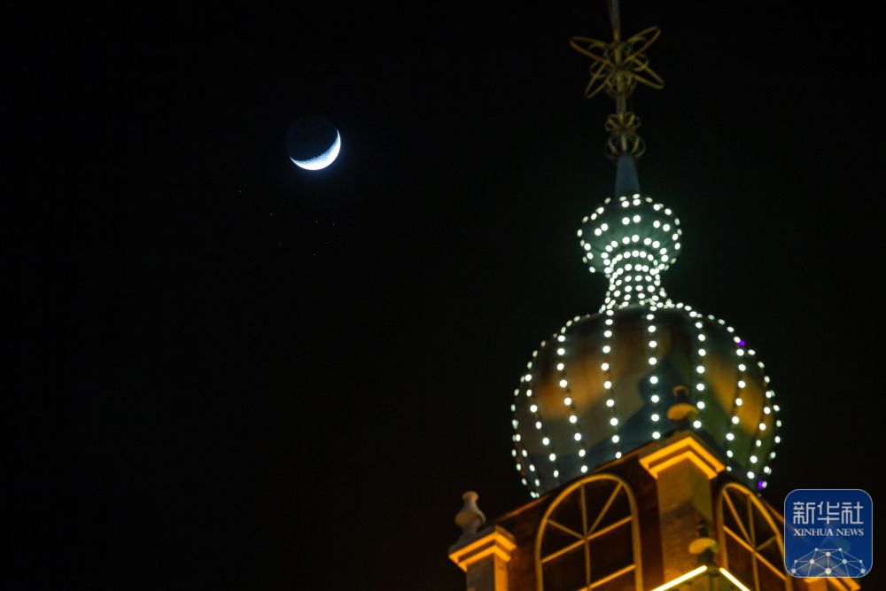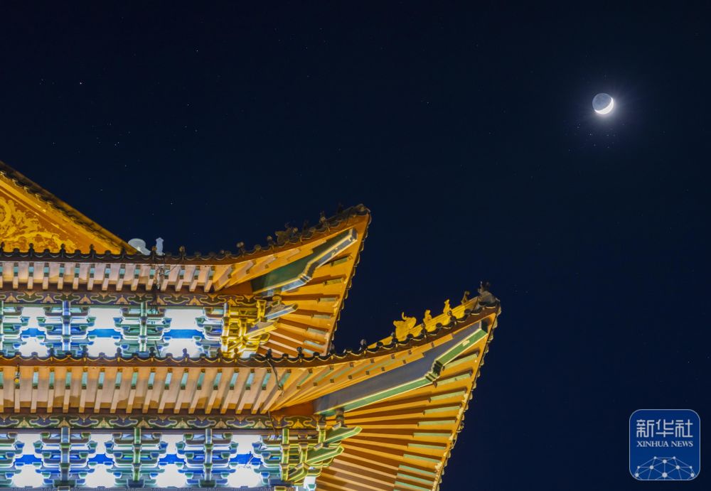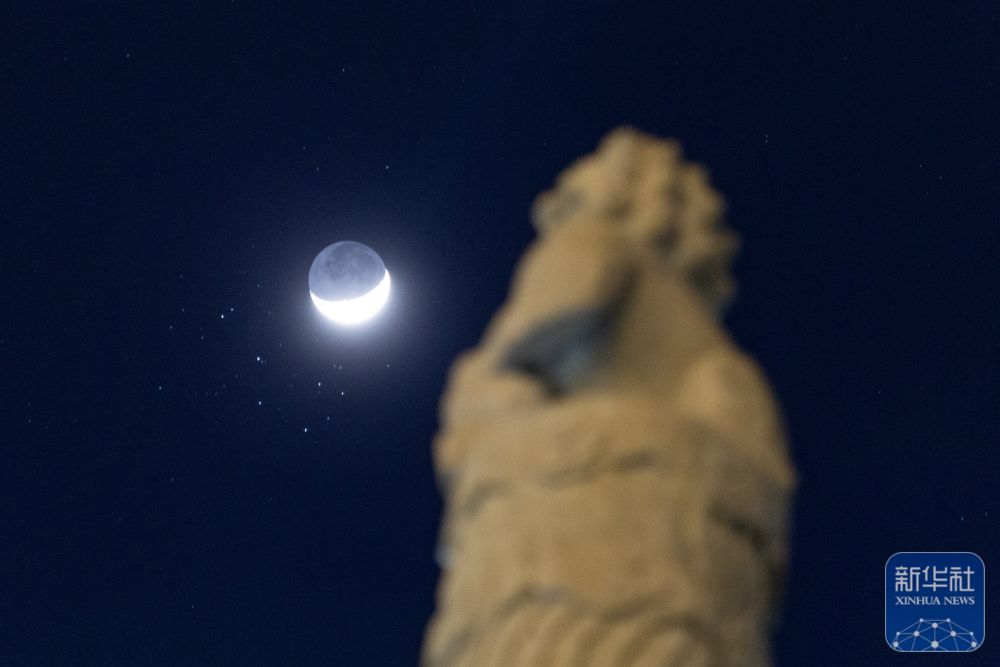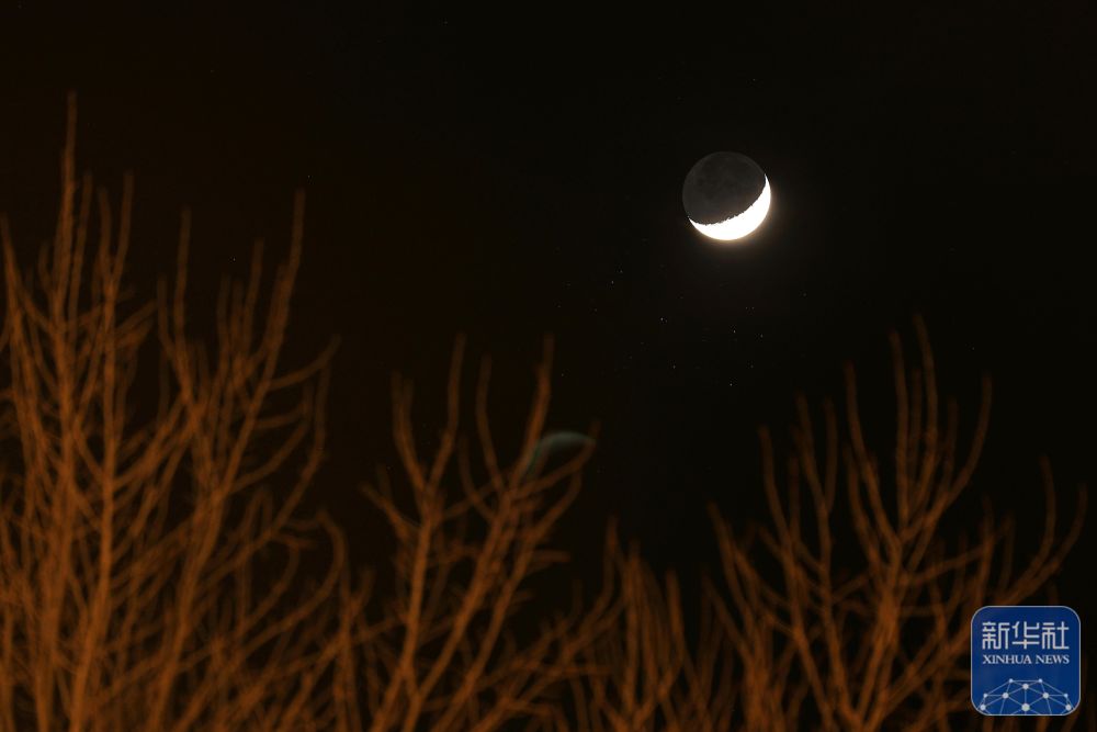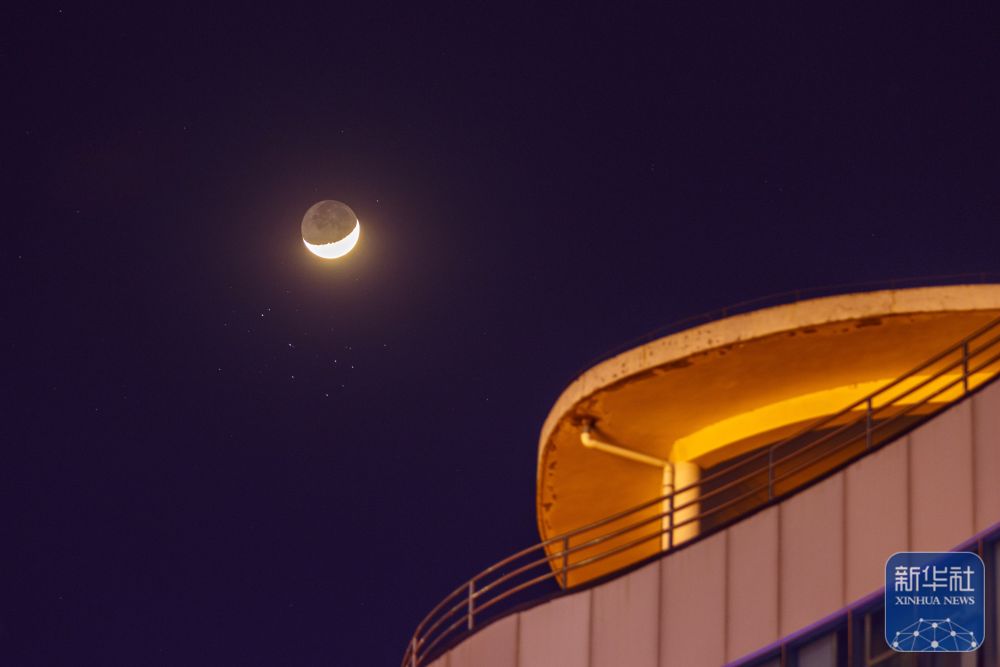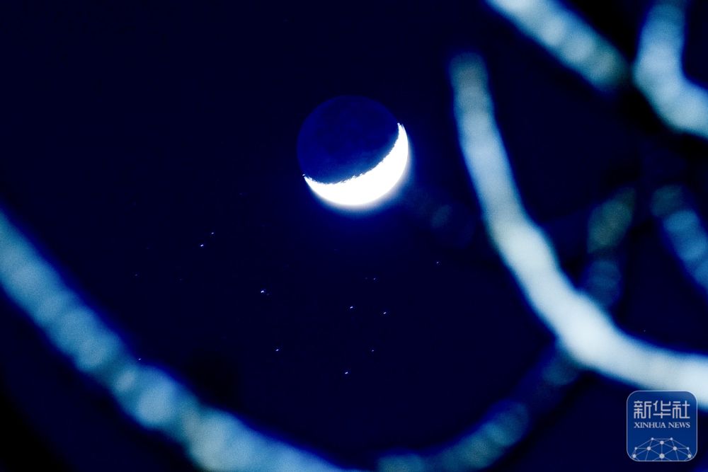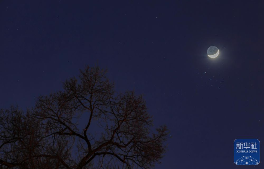 ↑ 3月23日在黑龙江省大庆市拍摄的“昴星团伴月”景观。新华社发(刘崴 摄)