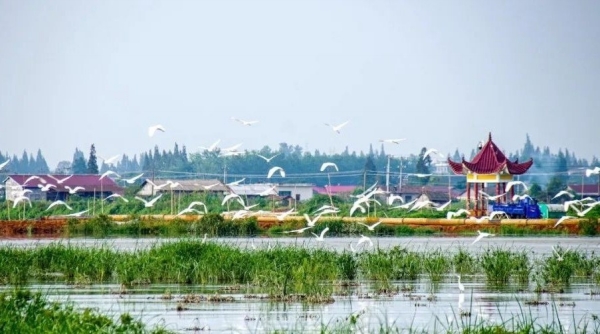 水养人,更养心。喝着洞庭水长大的菜薹、谷鸭、莲藕,自带甜润的气息,于是“长寿之乡”的美誉便水到渠成。黄昏时分漫步湿地公园,白发老者倚栏垂钓,天真孩童嬉戏栈桥,灯光洒在水面,宛如繁星跳跃。翻开古老的县志,探寻“安乡八景”,再抬眼望向长街华灯、球馆诗墙,忽然觉得任何旧景都比不上此刻这鲜活的烟火气。“诗词之乡”“乒乓球之乡”……这些新名号如同露珠,点点润泽着这片土地。