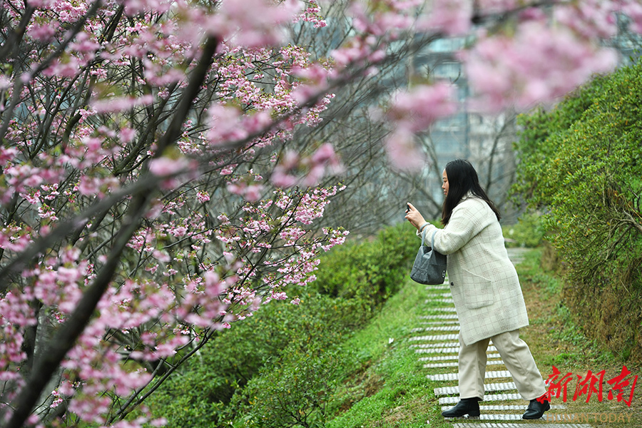 3月23日,市民在赏花游玩。日前,2026湖南湘江新区晚安樱花季在晚安家居文化园启幕。本届樱花季以“十年‘湘’约 ‘樱’你精彩”为主题,通过“文旅+”模式推动产业融合,打造集赏花、体验、消费于一体全年龄段友好的体验空间,为市民带来春日文旅新体验。 湖南日报全媒体记者 田超 摄