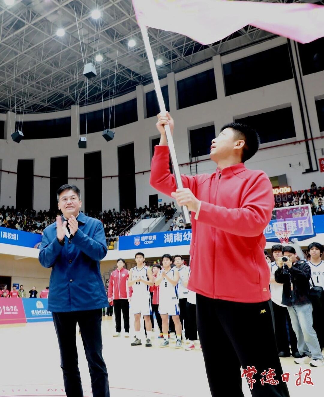 3月23日晚,2026湖南省城市篮球联赛(“湘BA”)常德代表队出征授旗仪式暨2026常德市甲级篮球联赛(“德甲”)高校组开赛仪式在湖南幼儿师范高等专科学校体育馆举行,标志着常德高校篮球赛季正式拉开帷幕,也为即将代表常德征战“湘BA”的篮球健儿们擂响出征战鼓。常德市委书记罗毅君出席活动并授旗。