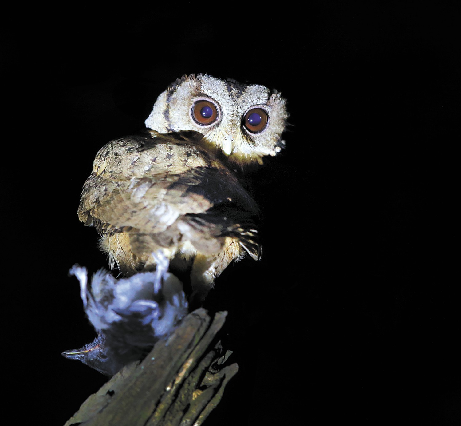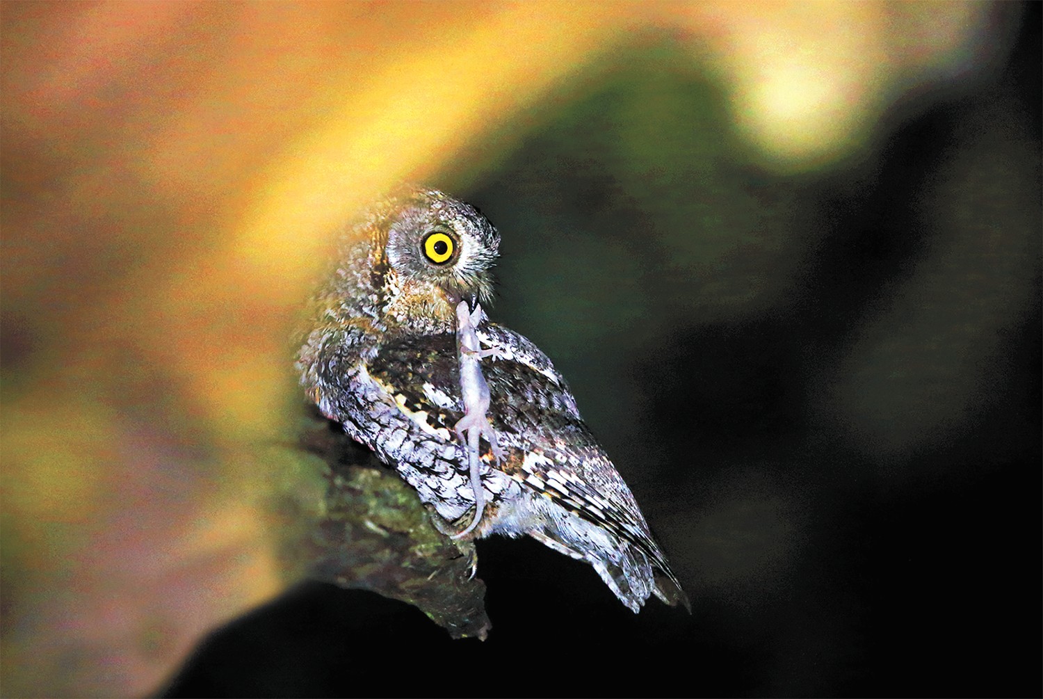 东方角鸮,“小巧玲珑的猎手”,是小型鸮类的代表,上体和脸盘灰褐色,领圈淡棕色,下体羽色如同枯树的斑痕