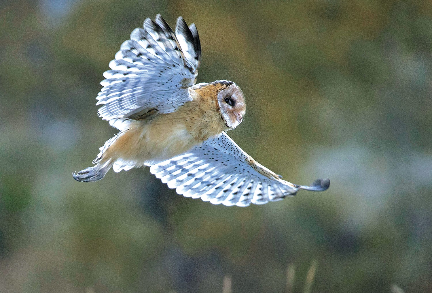 仓鸮,“捕鼠专家”,体长30厘米左右,头大脸盘圆,羽色淡褐色,前胸白色里带黑点,因常栖息在农村的谷仓、草垛中而得名