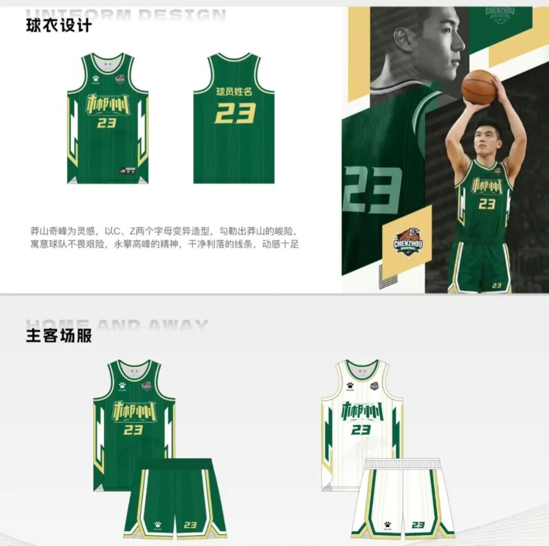 郴州队队服以绿色为主色呼应生态之城,搭配虎纹图案,取“林中之城,虎虎生威”之意。