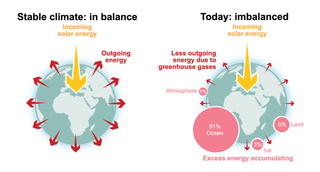 地球能量平衡与失衡示意图(图片来源:政府间气候变化专门委员会)