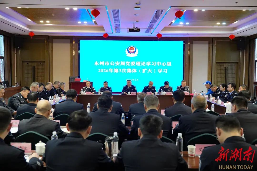 现场教学结束后,举行永州市公安局党委理论学习中心组2026年第3次集体(扩大)学习。