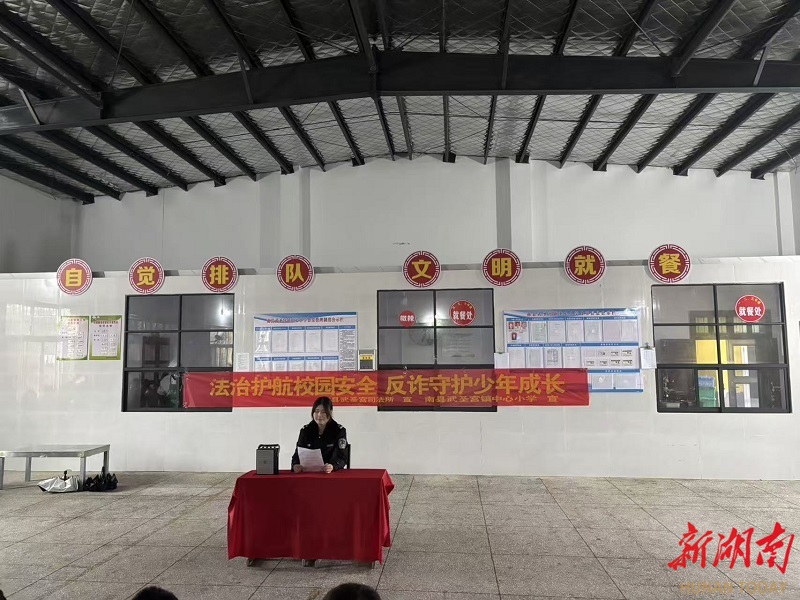 科教新报·新湖南客户端讯(通讯员 余佳卉)3月20日上午10时,南县武圣宫镇中心小学迎来了一堂特殊的法治安全教育课。该校法治副校长、镇司法所所长汤玉芝以“法治护航,远离诈骗”为主题,为全体师生带来了一场生动实用的防范电信网络诈骗专题课。课程通过法律解读、案例剖析与互动答疑,切实提升了师生们的防骗意识与法治素养。