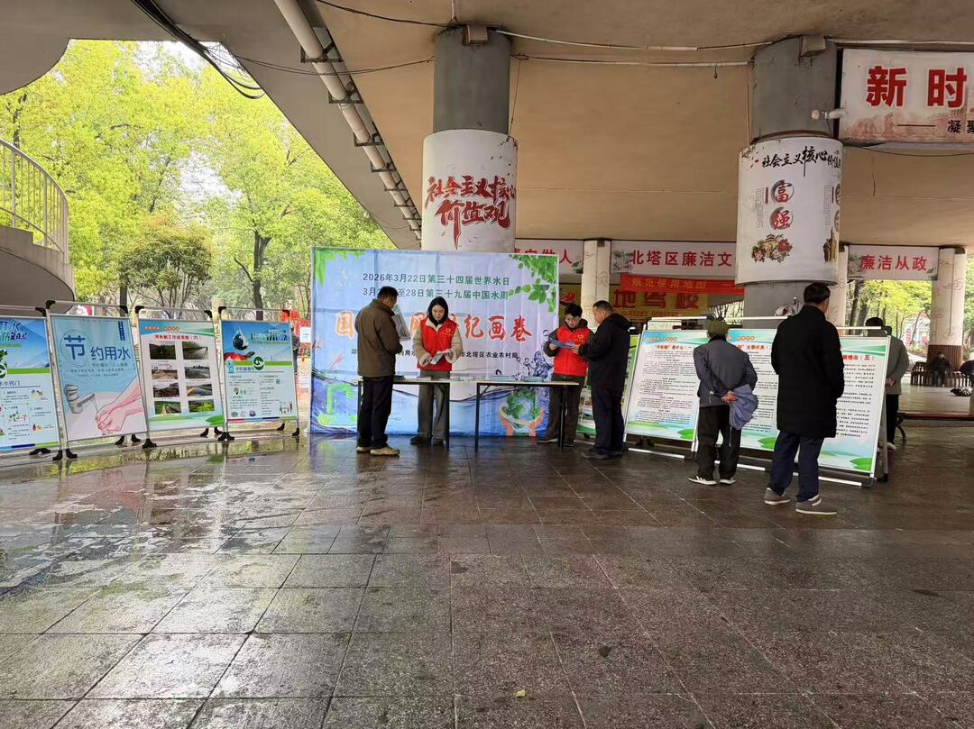 现场化身节水宣传的主阵地。“政策宣讲区”里,志愿者们向过往市民发放节水宣传单、展示宣传告示牌,细致讲解北塔区河长制工作成效、《中华人民共和国水法》等内容;“节水科普区”中,志愿者们耐心传授家庭节水小技巧、农业节水灌溉方法等实用知识,引导群众树立科学用水理念;“成果展示区”还设置了河长制工作成果展示墙,用图文并茂的形式展现北塔区在水资源保护、水环境治理方面的扎实举措,吸引不少市民驻足观看、拍照留念。