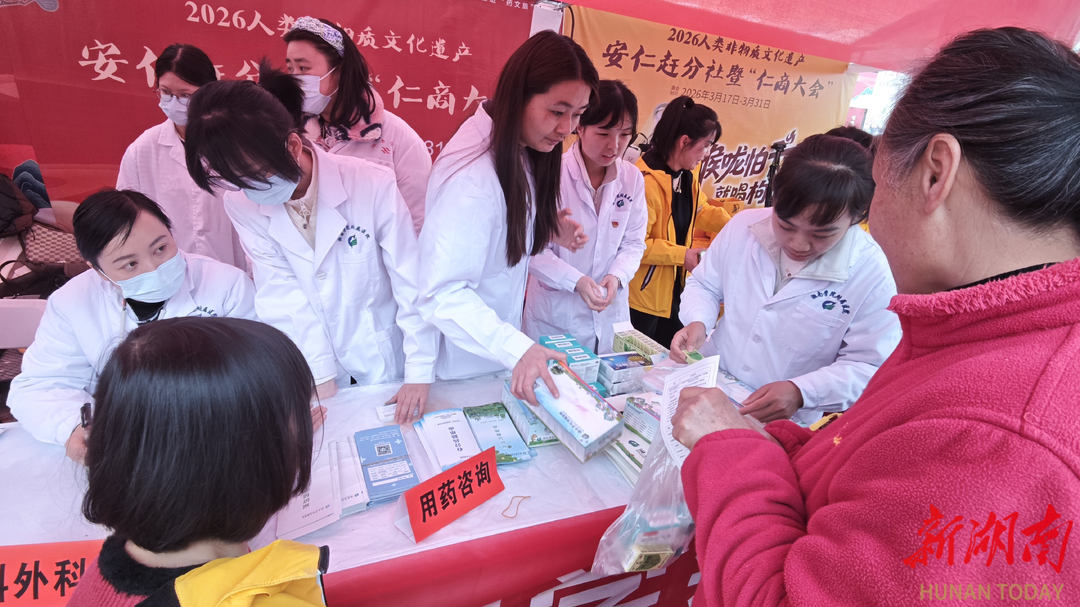 “神农尝百草”中医药文化体验区:中药师现场讲解安仁道地药材,发放《春分药膳指南》,引导群众科学使用药膳,传承地方特色中医药文化。
