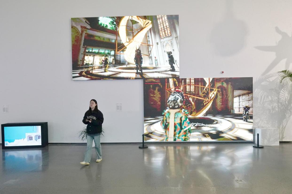 《2026亚洲数字艺术展》在B1层2展厅,步入其间,迎面是巨大的数字屏,屏幕上展示的是《公式植物》数字作品,短短两分多钟,就将植物的“分形”现象直观呈现。该展览是中关村论坛年会重要配套活动,以“人有人的用处”为主题,汇集来自6个国家和地区的二十余件数字艺术作品,通过脑机体验、视觉影像、交互装置、人工智能(AI)系统及机械装置等多种形式,呈现人机协作与未来社会图景。