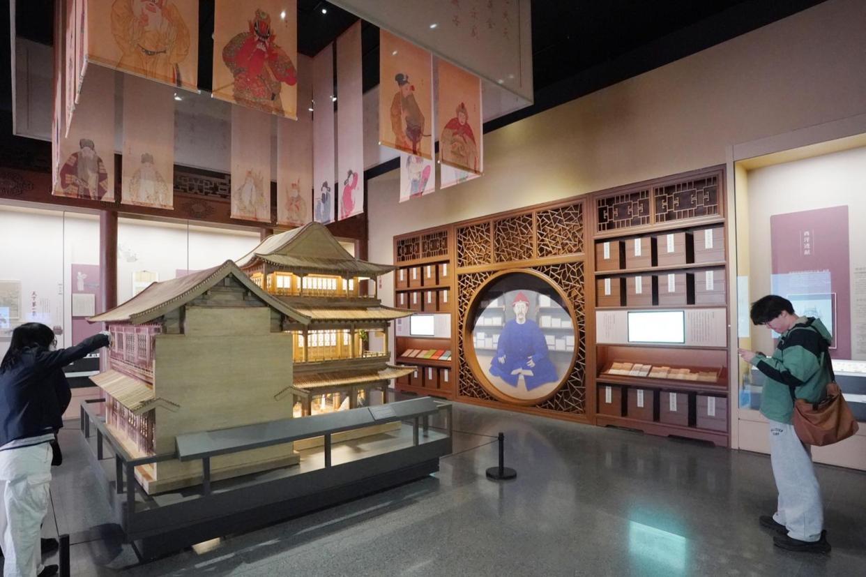 “样式雷”雷家玺的数字人,为你介绍《圆明园四十景全图》;《崇庆皇太后万寿庆典》古画动了起来,皇家仪仗气势恢宏,轩窗之上鸟雀云集,它们都来自清宫绘画中,点点鸟雀就能知道它是谁……展览梳理了三山五园逾千年发展脉络,分为“形胜”“营造”“理政”“文化”“沧桑”“新生”等篇章,融合了文物实物与数字复原技术,沉浸式呈现其营造技艺与文化内涵。