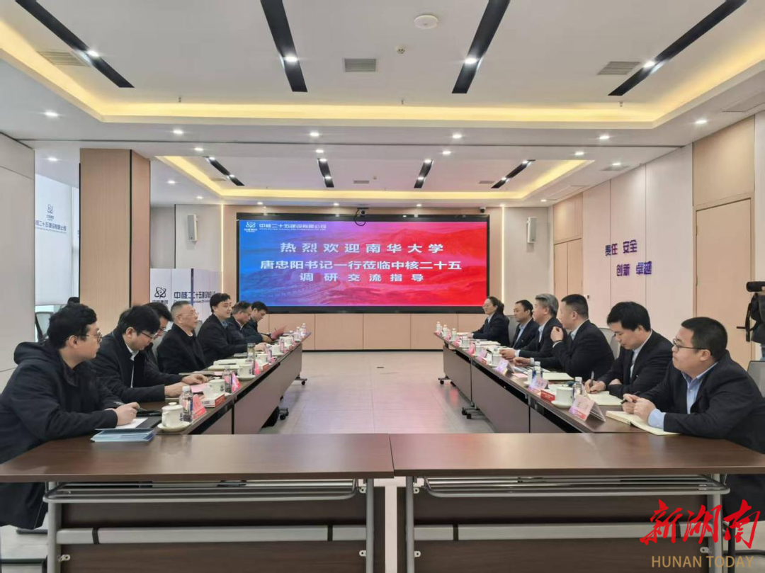 湖南日报·新湖南客户端3月24日讯(通讯员 刘赞)近日,南华大学党委书记唐忠阳一行赴长沙走访中核二十五建设有限公司,开展访企拓岗暨校企合作交流座谈。公司党委书记、董事长边绍谦,党委委员、副总经理李春浩,南华大学党委副书记李乐等参加活动。