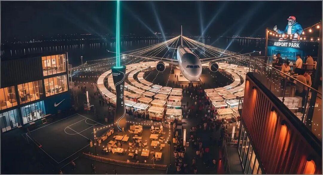 空港公园由湘潭美好窑湾公司引入了亚洲世高集团进行投资建设,占地4000平方米,由潭宝汽车站停车场改造,属于窑湾历史文化街区“一主轴四板块”与“一心一轴六片区”总体规划重要组成部门及四大主力品牌组团之一。空港公园坐拥优质滨水区位,以“窑湾新聚场,活力发生器”为定位,融合多巴胺设计与街头运动文化,构建集潮流文创市集、运动体验与亲子互动于一体的年轻化社交空间。建成以后将成为我市崭新的“滨水+潮流+夜经济”好去处,不仅填补区域夜经济消费体验的空白,更为窑湾历史文化街区注入全新活力,形成传统与潮流碰撞的特殊文旅体验。