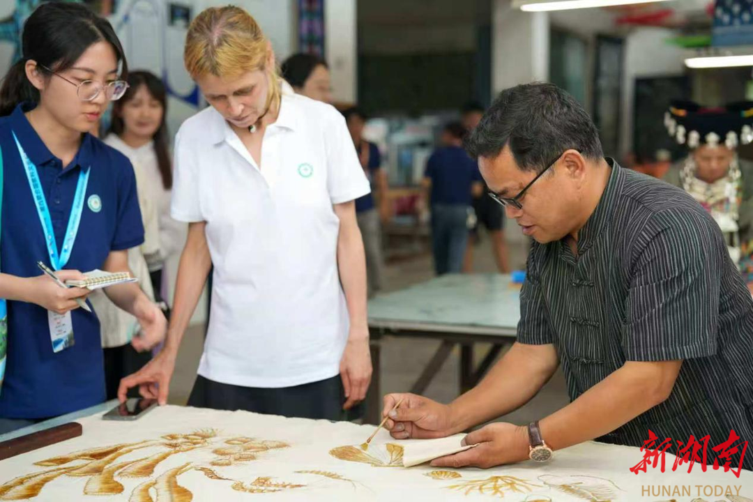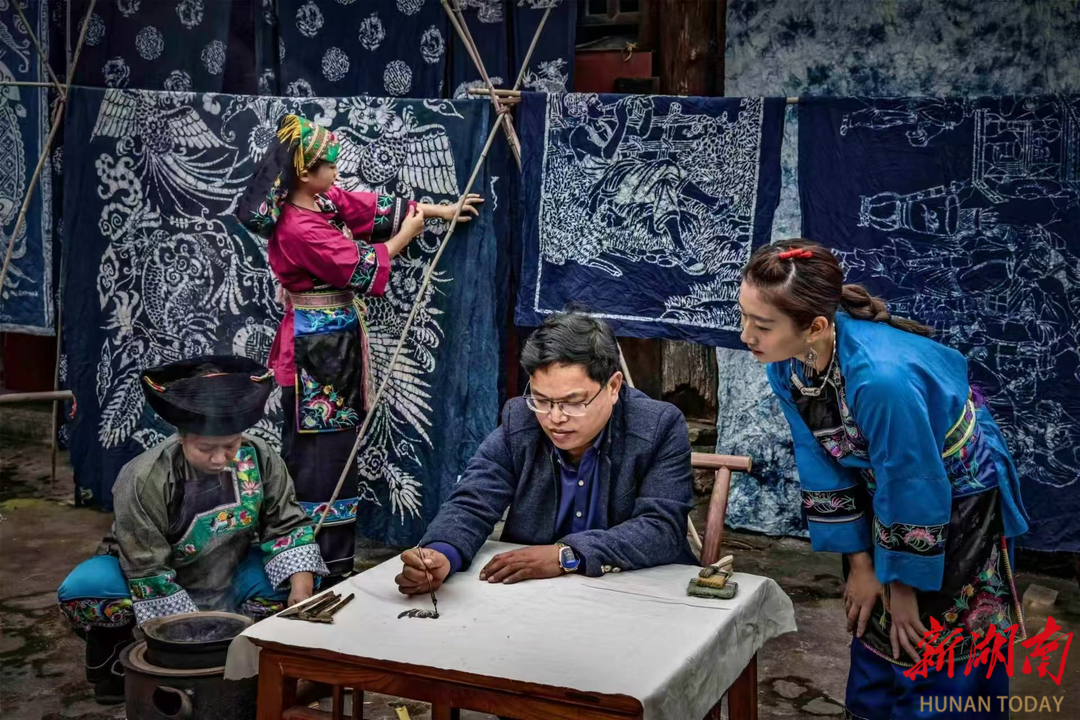 村里多年来坚持开设“假期非遗学堂”,每到假期,孩子们都能在村部楼或传承人的院坝里,近距离学习赶秋、苗歌、蜡染、苗医等非遗课程。这套用心打磨的传承体系,至今已让70余名本土青年学子在祖辈的口传心授中接过文化接力棒,让苗族文脉在新一代心中扎下根、续上脉。与此同时,板栗村也以开放姿态迎接八方来客,人民日报等多家媒体多次聚焦村寨,用镜头记录朴实的非遗表演与真实的苗寨生活;湖南农业大学、吉首大学、湖南大学等高校师生也常来常往,蹲点调研、深入交流,让这座深山苗寨的文化价值被更多人看见,让板栗村的苗族文化走出湘西、走向更广阔的舞台。
