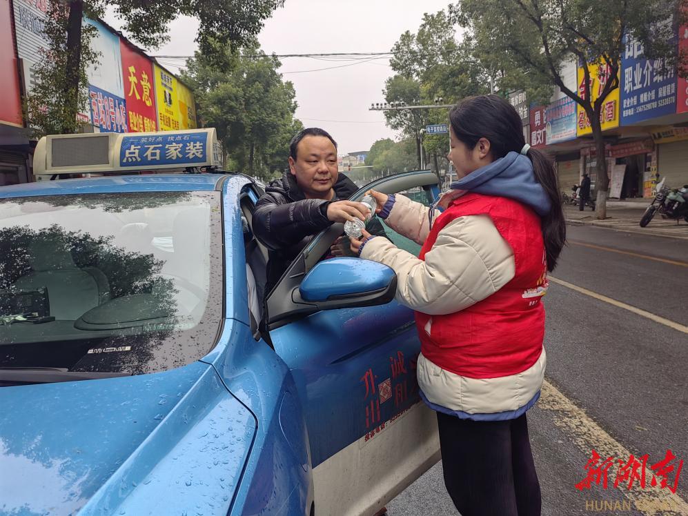 志愿者为网约车司机提供服务。
