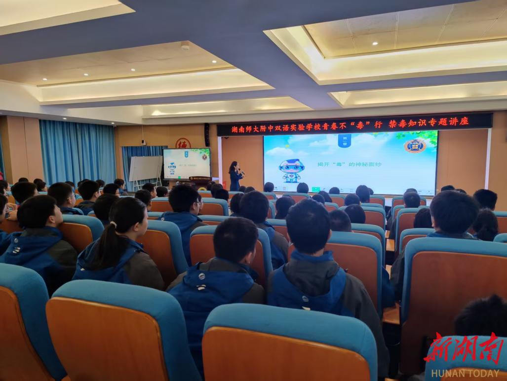 新湖南客户端3月24日讯(通讯员 林雅芝)为进一步加强青少年毒品预防教育,筑牢校园安全防线,3月24日上午,长沙市天心区新开铺街道木莲社区携手湖南师大附中双语实验学校,共同开展以“健康青春 无毒相伴”为主题的禁毒知识专题讲座。