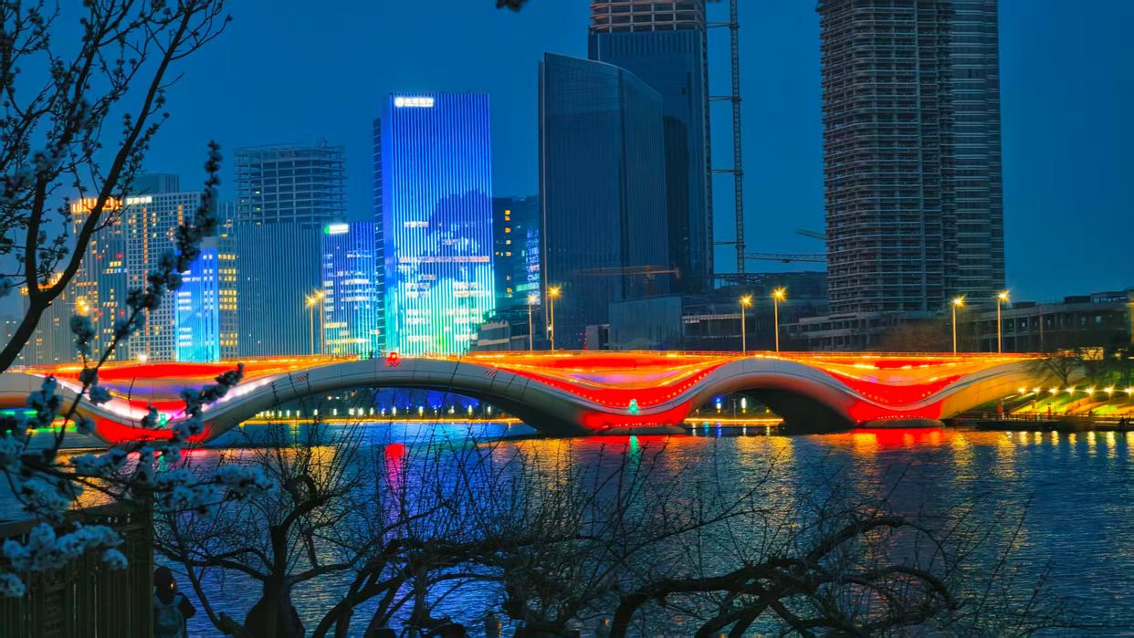 3月23日,夜幕垂落,大运河两岸华灯次第绽放,暖光勾勒古建飞檐,霓虹染亮粼粼波光。灯影随波轻漾,桥影与水光相融,流光蜿蜒如星河落地,将千年漕运文脉揉进温柔夜色,旖旎动人。
