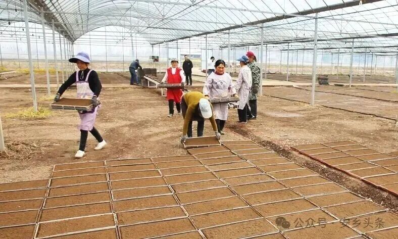 在昌源农作物种植专业合作社的集中育秧基地,工人们正熟练地操作着育秧设备,在流水线上完成摆盘、铺土、精准播种、覆土等一系列工序。一个个制作精良的育秧盘源源不断地下线,随后被整齐地码放整齐,送入温控大棚进行催芽管理。