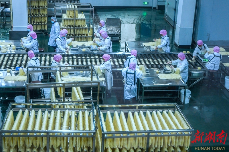 3月24日,娄底市新化高新区湖南丰谷食品科技股份有限公司生产车间,员工在加紧生产米粉订单。近年来,新化县推动米粉产业从初加工向精深加工转型,形成了以米粉为核心的特色食品产业体系。吴永华 摄(湖南图片库)