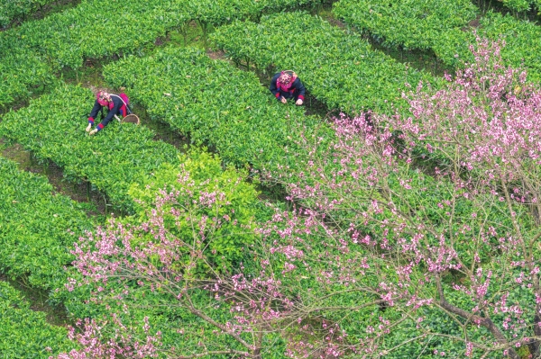 3月24日,宜章县莽山瑶族乡永安村茶园,村民正忙着采摘春茶。近年来,当地依托良好生态资源发展茶产业,有效促进农民增收。