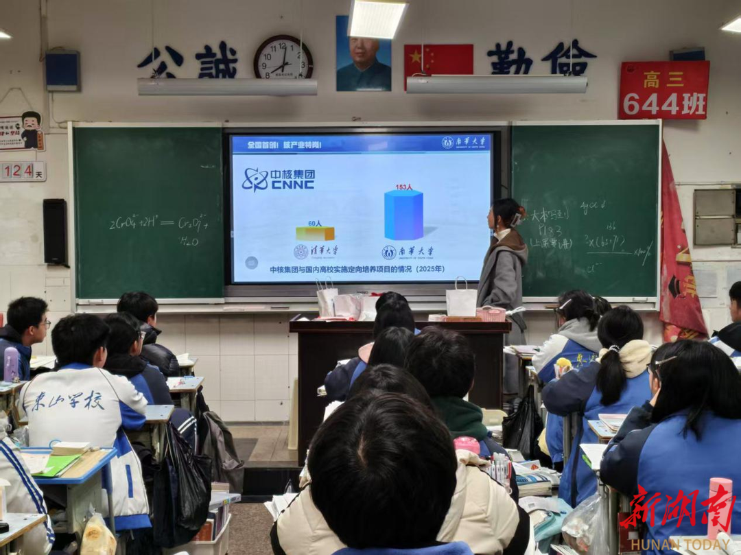宣讲传薪火,青春传力量。实践期间,多名学子重返家乡母校,开展招生宣讲与成长经验分享,为学弟学妹照亮追梦之路。耒阳市正源学校宣讲现场,学子结合自身经历,细致解答专业选择、高考备考等困惑;祁东县第一中学,学子分享个人成长故事,通过校园实景照片,全方位展现南华大学办学特色与校园风貌;山西大同小学课堂上,学子以自身求学经历为切入点,向家乡学子介绍南华大学的优势与魅力。此外,多名学子分别走进各自母校,从专业优势、资助政策、备考规划等维度开展宣讲,用真诚分享缓解备考焦虑,传递南华温度与青春力量。