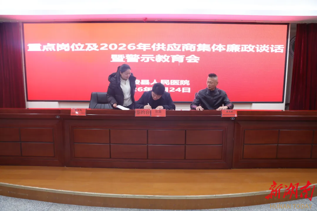 湖南日报·新湖南客户端3月25日讯(通讯员 刘敏)3月24日,沅陵县人民医院召开重点岗位及2026年供应商集体廉政谈话暨警示教育会议。医院党政领导班子成员、重点岗位负责人及药品、耗材、设备等供应商代表参会,会议由党委委员、纪委书记蔡杰主持。
