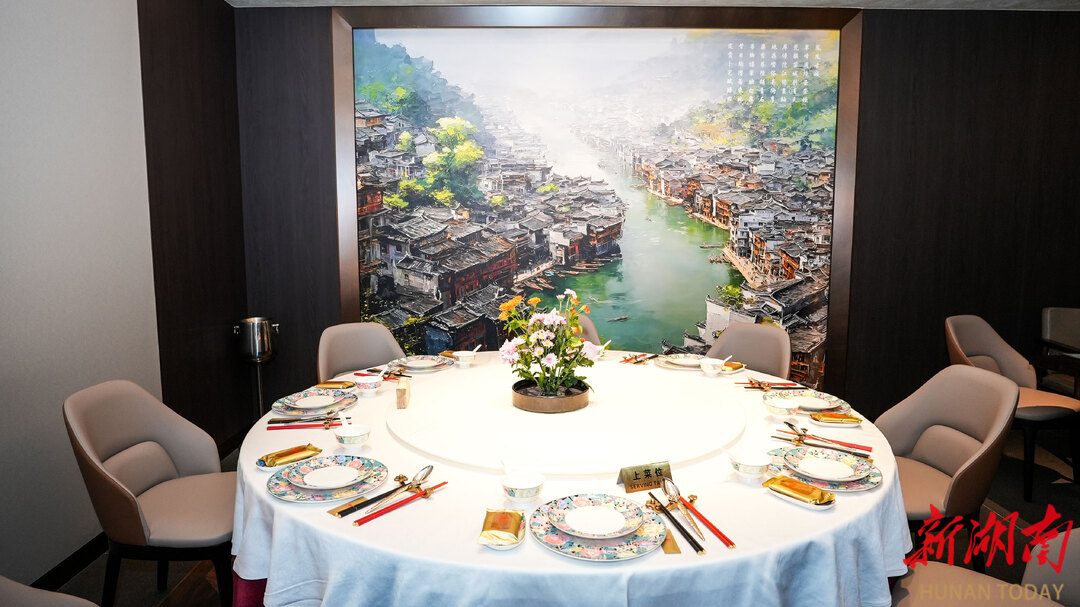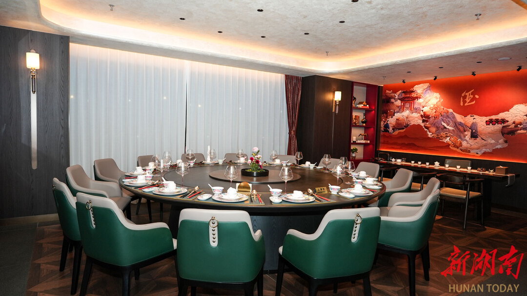 “很多人来了以后都问,你这个设计完全跟人家不一样。”胡平带着记者穿行于包间与长廊之间。这份“不一样”,源于一次历时一周、深入湖南的“寻根之旅”。他带着团队住进长沙,从花鼓戏中捕捉湖湘韵味;驱车常德,感受园林文化;驻足沅江胭脂湖畔,将家乡的骄傲化作包间主题;深入醴陵瓷器博物馆,定制了醴陵瓷餐具……“你做文化,做什么文化?湖南文化。你必须有湖南特色的、有代表性的东西。”胡平这样解释他的投入逻辑。