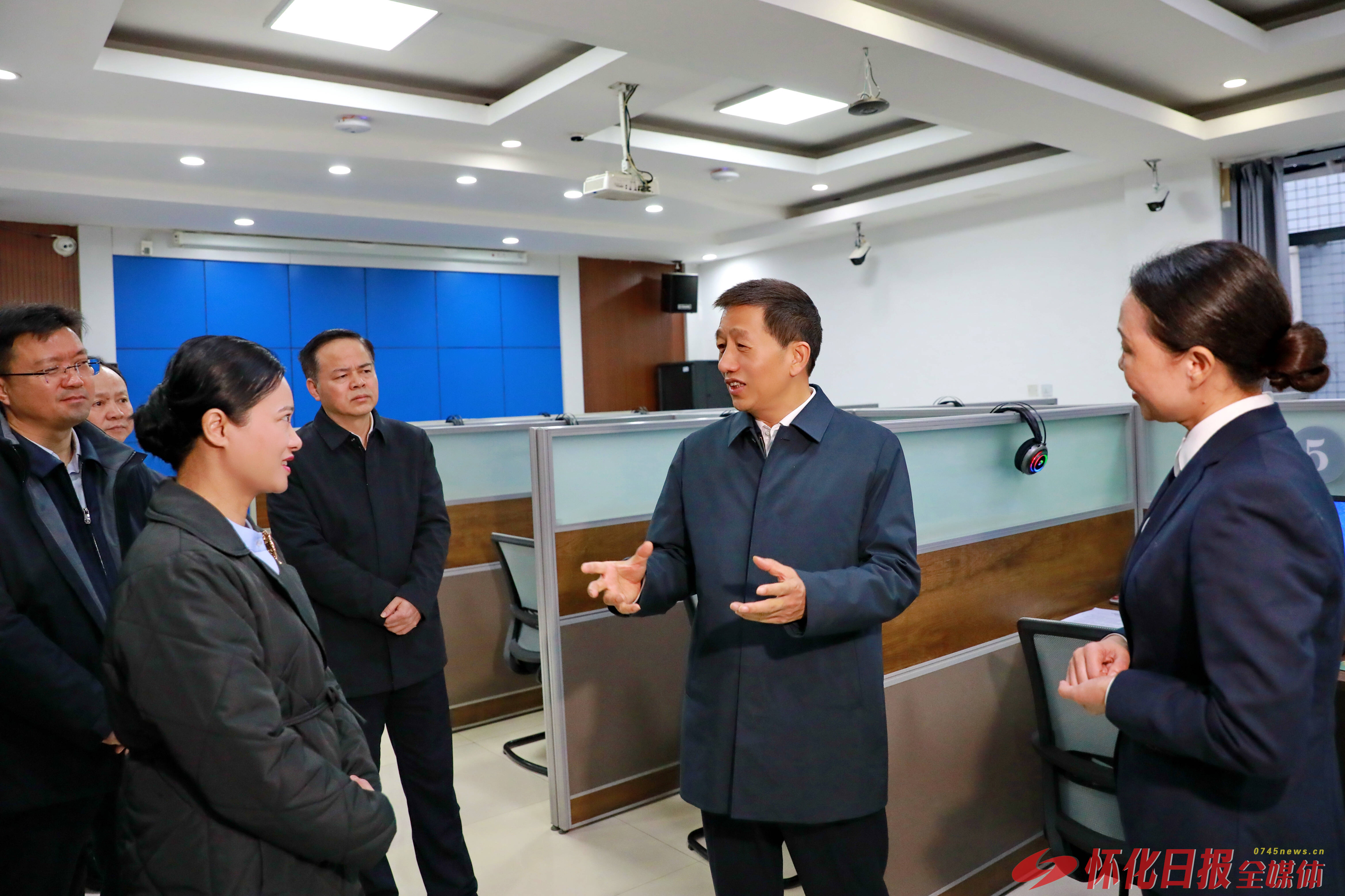 (3月25日上午,市委书记许忠建,市委副书记、市长韦朝晖在市公共资源交易中心调研“机器管招投标”工作。)
