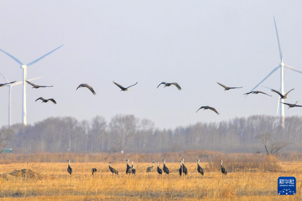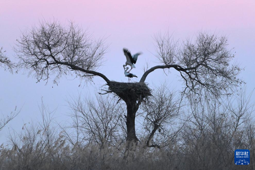 这是3月22日在黑龙江省齐齐哈尔市克钦湖湿地拍摄的东方白鹳。新华社发(王勇刚摄)