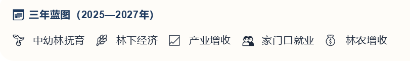 岳阳市、县林业局作为联点帮扶单位,充分发挥专业优势,为坎塘村量身定制了2025—2027年林业发展规划。按照规划,三年内将完成中幼林抚育8000亩,发展林下经济800亩,林业收入年增长100万元,新增本地就业50人以上,林农人均年收入增加800元。