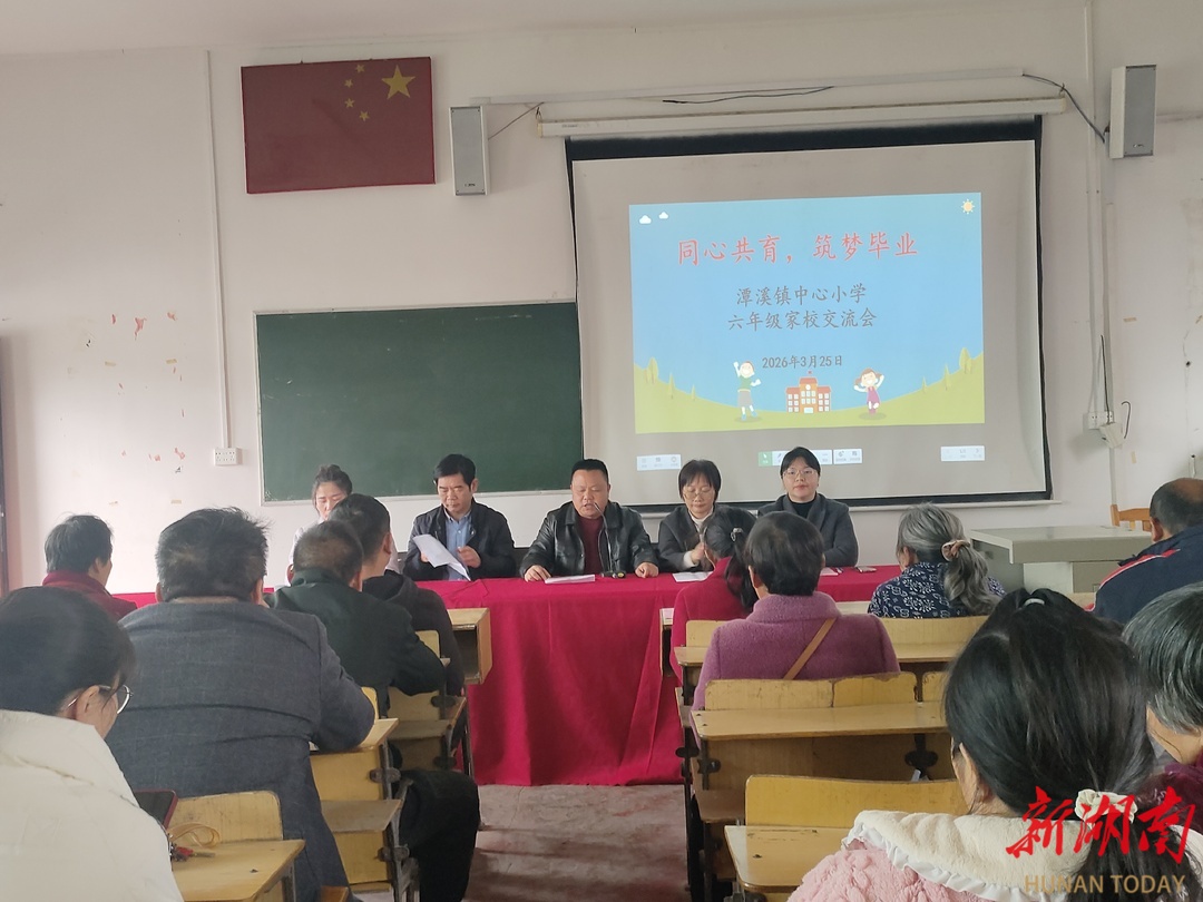 科教新报·新湖南客户端讯(通讯员 周飞艳 周越祥)为助力六年级学生平稳度过小学最后阶段,顺利衔接初中生活,3月25日下午,新邵县潭溪镇中心小学在四楼多媒体室召开了以“同心共育,筑梦毕业;以爱相伴,助力成长”为主题的家校交流会。学生家长与学校教师齐聚一堂、共话成长,为孩子们的毕业季保驾护航。