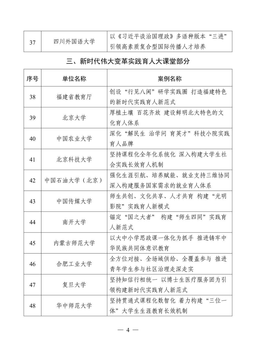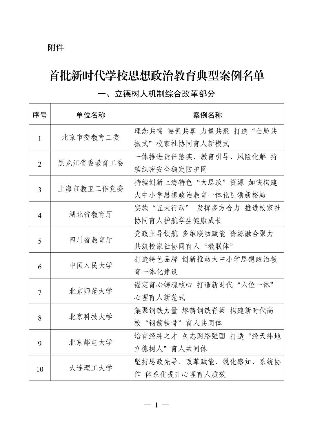 湖南日报3月25日讯(全媒体记者 杨斯涵)近日,教育部正式发布100个首批新时代学校思想政治教育典型案例,案例覆盖立德树人机制综合改革、党的创新理论主课堂、新时代伟大变革实践育人大课堂、数字时代网络育人新课堂、教师队伍和基层组织建设等5部分,系统涵盖思政工作相关体制机制、平台载体、队伍支撑、协同保障、评价反馈等各方面。