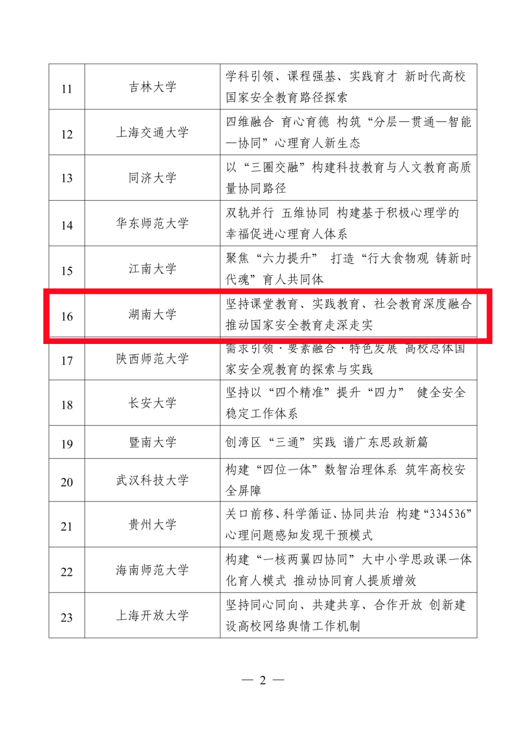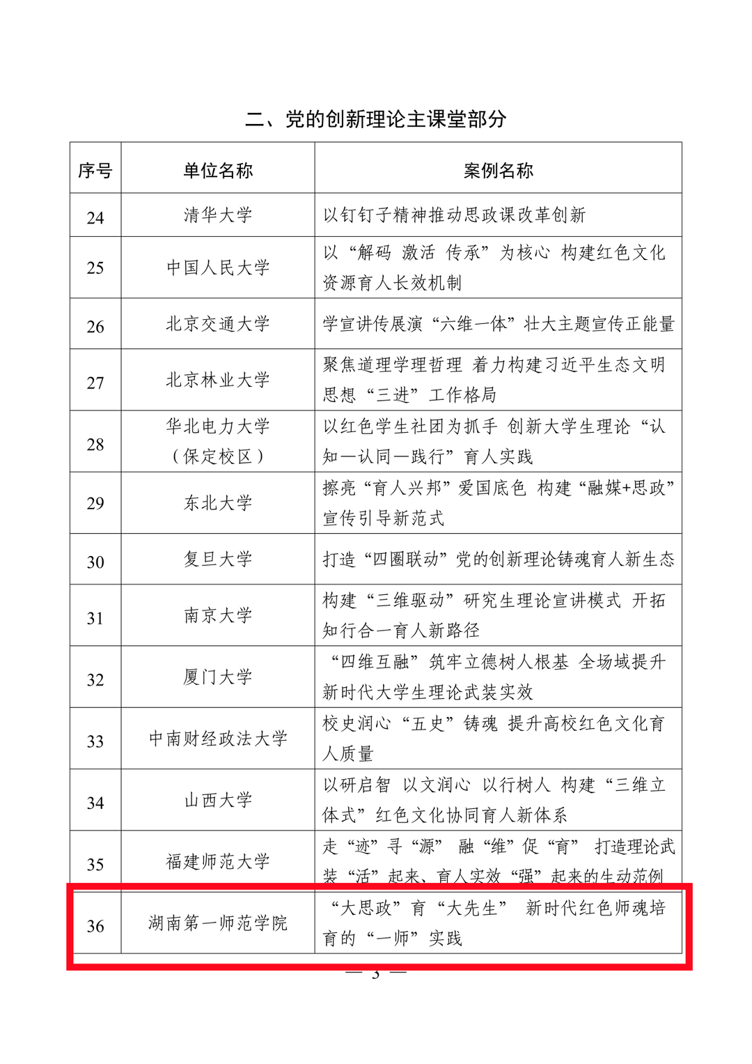 湖南高校立足湖湘红色底蕴与办学特色,深耕思政教育创新实践,打造了一批可复制、可推广的特色经验,为新时代高校思政教育提质增效贡献了湖湘智慧。中南大学、湖南大学、湖南第一师范学院等学校案例入选本次典型案例名单。