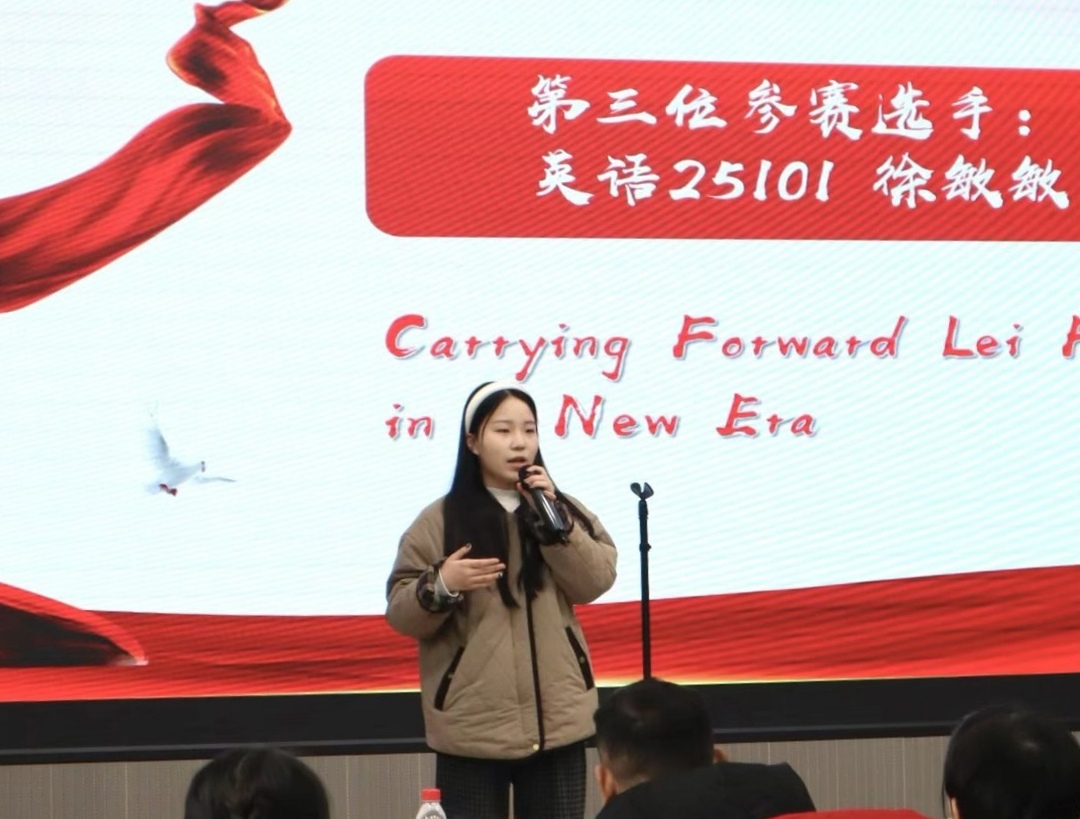 此次活动将专业教学与思政教育相结合,引导学生在语言实践中深化对雷锋精神的认识。参赛学生用英语讲述雷锋事迹,并结合个人经历分享理解。英语25102班谷楚楚结合自身从英语成绩低谷到重拾信心的经历,将教师的悉心关怀视为雷锋精神的现实实践;商英25101班刘诗睿以雷锋为村民搭建桥梁的事迹为切入点,提出当代青年可从“第一块石头”做起,在力所能及之处伸出援手。
