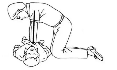 ●施救者两臂位于患者胸骨的正上方,双肘关节伸直,利用上身重量垂直下压,对中等体重的成人下压深度为5-6厘米,而后迅速放松,解除压力,让胸廓自行复位。如此有节奏地反复进行,按压与放松时间大致相等,频率为每分钟100-120次。