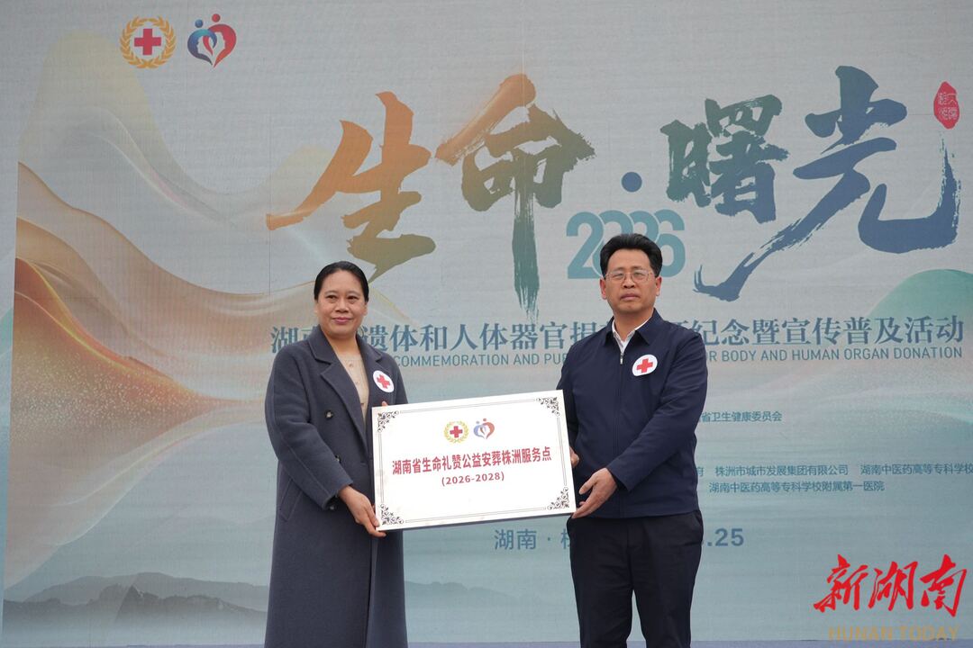 湖南省民政厅党组成员、副厅长、省红十字会副会长欧阳标为“湖南省生命礼赞公益安葬株洲服务点”授牌,传递对捐献者的尊崇与礼遇,让“尊重生命、感恩奉献”的理念更加深入人心。