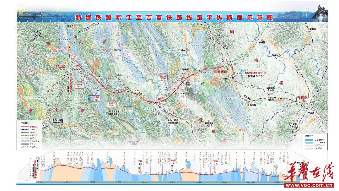 新建铁路黔江至吉首铁路线路平纵断面示意图
