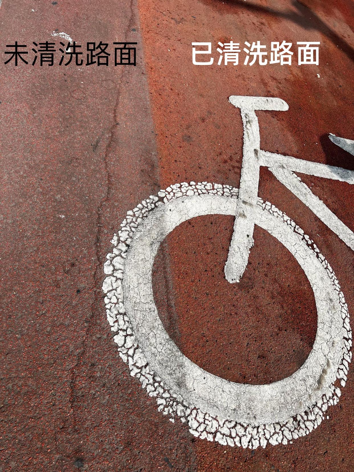 记者看到,南河沿大街目前正进行整治提升改造,路侧花坛灌木被连根挖出装车,店铺外脚手架林立,装修改造忙碌进行。受施工影响,主路上不仅“土大”,还常散落装修垃圾,绿化带泥土被车轮碾入路缝,顽固污渍极难清扫。而两辆“洗地车”驶过后,路面瞬间划出鲜明分界线:清洗过的自行车道露出红色“本色”,未清洗的路面则“灰头土脸”。