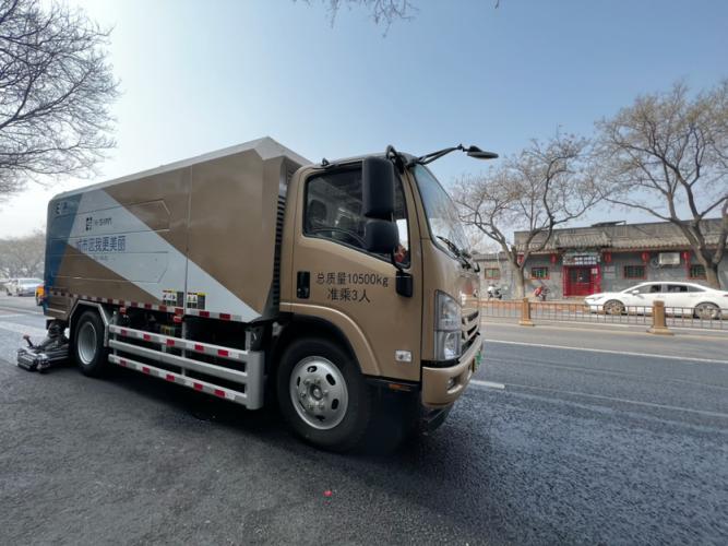 针对不同季节与道路脏污情况,车辆还可切换“强力清除”“深度清洁”“快速保洁”三种模式。落花落叶季启用快速模式,高效收拢路缘碎小落叶;工地周边重度泥污则启动强力模式,进行彻底冲刷。春季槐花飘落,黏液随槐花一同滴落在树下的道路上,花朵混着黏液粘在路面,用普通清扫方法很难清除。“去年在平安大街、隆福寺周边等繁华路段试点,一辆高压清洗车就能把路面槐花及黏液基本清扫干净,效率抵得上过去3辆普通环卫车。”白鹏说。