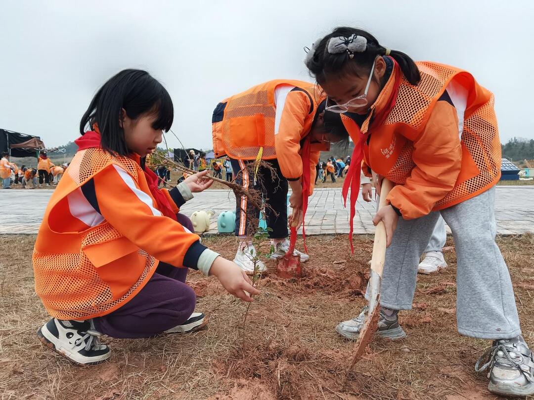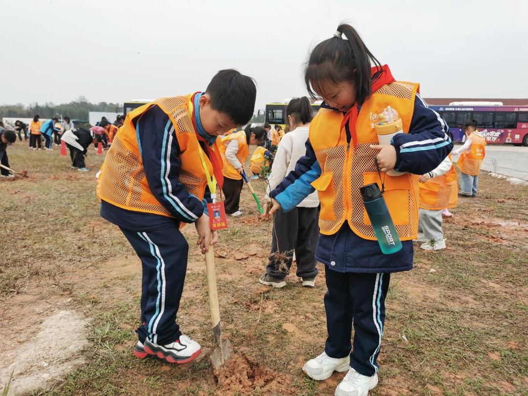在晨荷小学的孩子们眼中,这场活动充满了“魔法”:树苗竟然可以“从天而降”。但真正的魔法,是在植树实践中发生的——当他们亲手将树苗植入土壤,当“向下扎根,向上生长”的口号从口号变成了手中的动作,他们明白了:梦想可以“从天而降”,但成长必须脚踏实地。在起飞的跑道旁,他们种下了属于自己的“生长宣言”。
