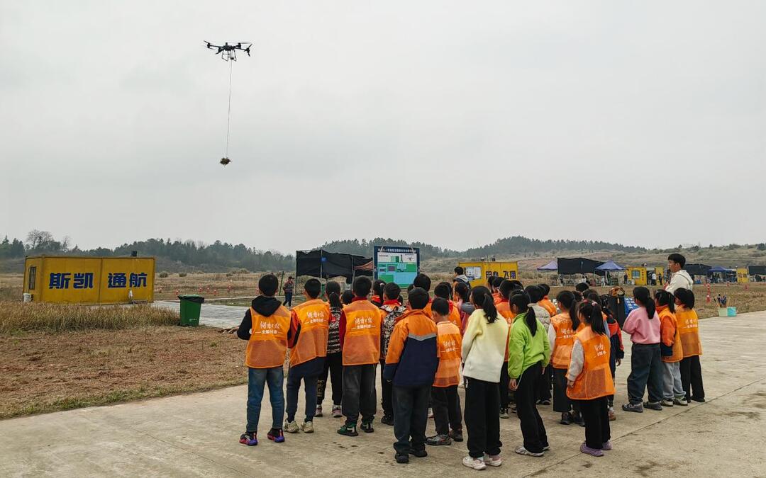 三月的株洲芦淞机场斯凯航空无人机实飞基地,当无人机载着树苗从蓝天缓缓降落,孩子们仰起的小脸上写满了惊叹与期待,科技与生态在此相遇,天空与大地在此对话。从安全纪律的讲解到无人机运输树苗的启幕,再到亲手将那一株株“从天而降”的希望种进土壤——这是一堂“会飞的劳动课”,更是一场关于梦想的播种。在这里,每一棵新绿都在告诉孩子们,有些东西可以“从天而降”,但真正的成长,必须亲手种进土里。