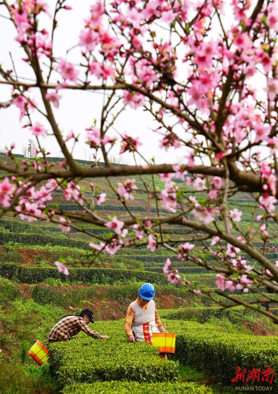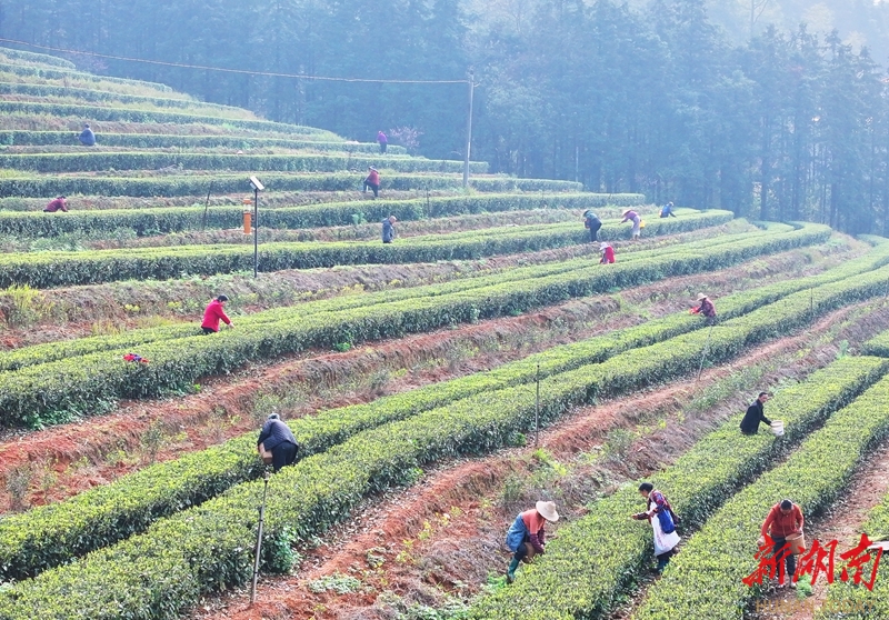 3月25日,衡东县白莲镇小初茶场,村民在采摘春茶。春分过后,气温回升,当地茶树新芽萌发,迎来春茶采摘旺季。曹正平 王峥 摄影报道(湖南图片库)