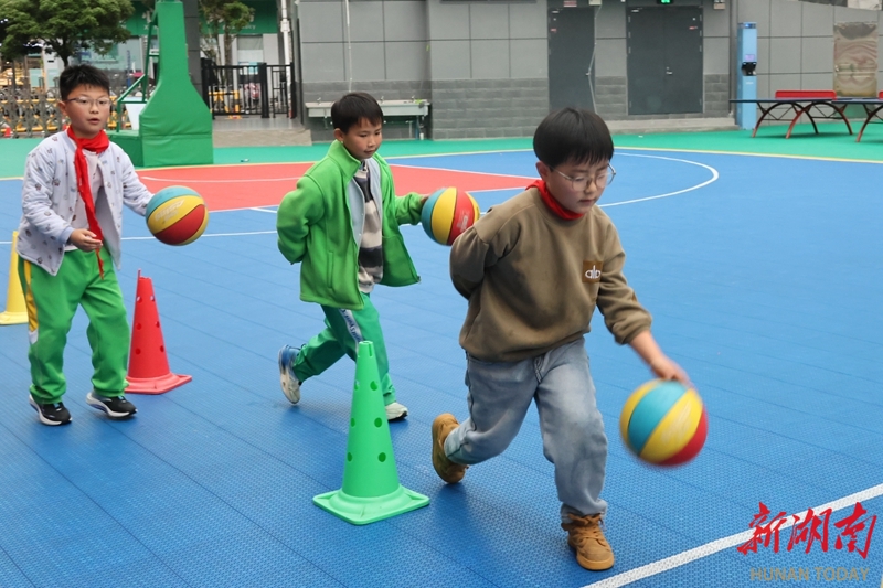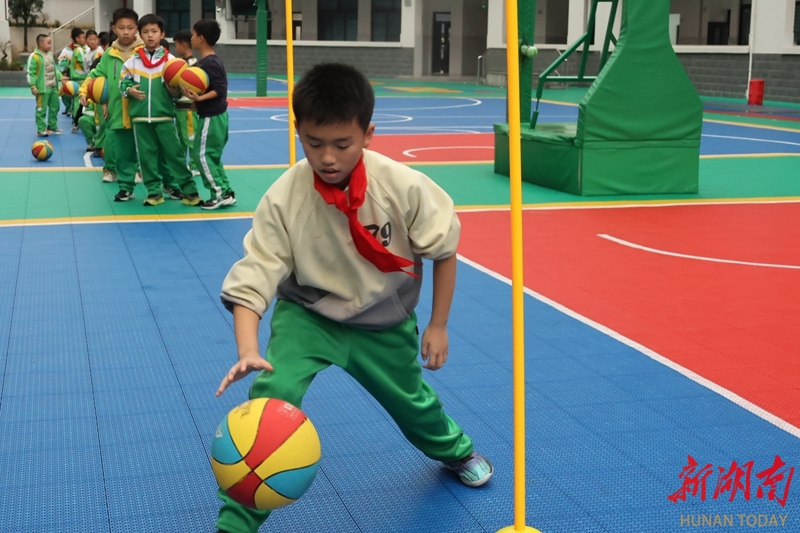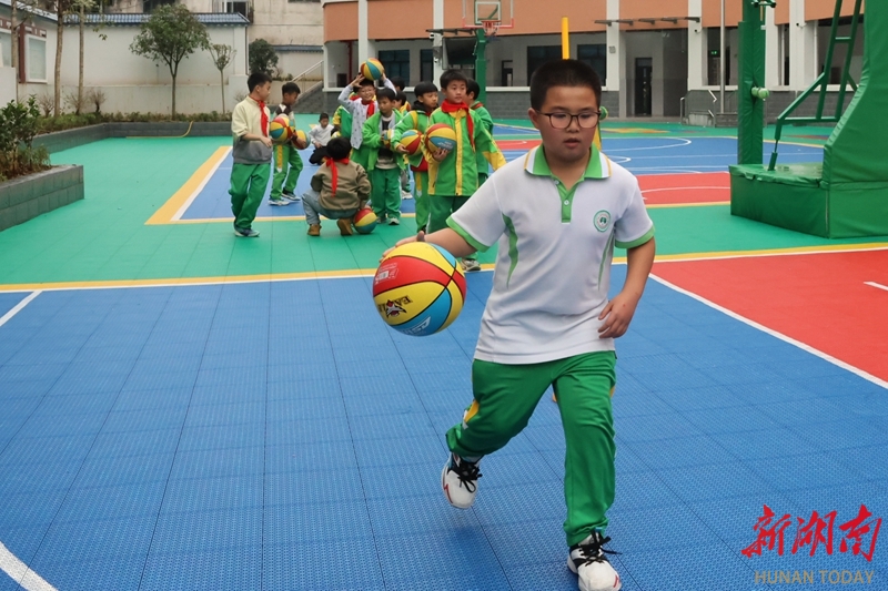 3月25日,湘西土家族苗族自治州砂子坳小学,学生在篮球社团练习运球。近年来,该校大力发展篮球运动,通过社团培养、趣味赛事等方式,既增强了学生体质,又营造了蓬勃向上的校园体育氛围。彭彪 摄(湖南图片库)