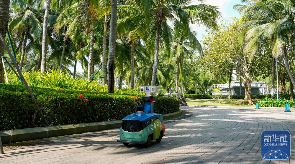 ↑ 3月25日,无人巡逻车在中国(海南)南海博物馆周边巡逻。