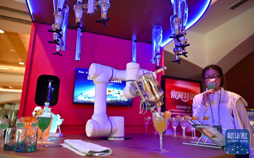 ↑ 3月25日,一款调酒机器人在博鳌亚洲论坛大酒店为参会人员调酒。
